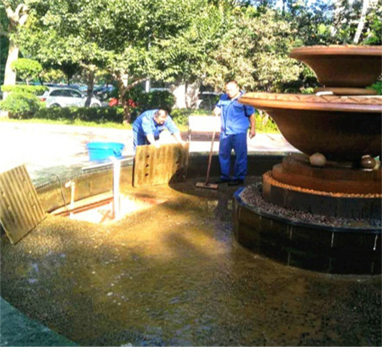 國慶節期間,黨校宿舍區物業處工程部與環境部人員加班對噴泉進行了徹底清理。