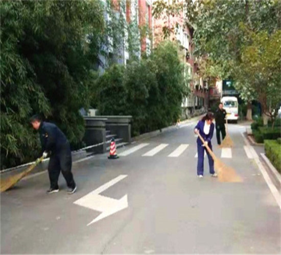中秋節、國慶節期間監管局物業處組織部分員工對院落道路清掃落葉。